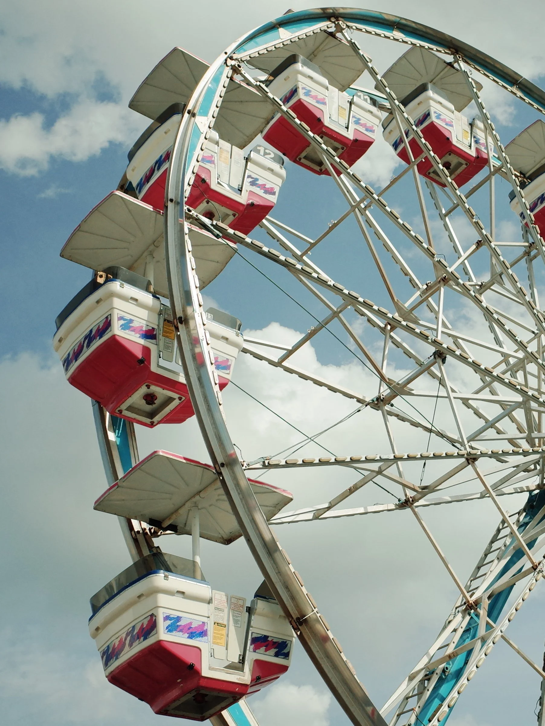 It proved to be a fairly miserable time in the direct sunlight so I kept moving around the park looking for shaded areas and interesting colors. The retro designs on the ferris wheel caught my eye.