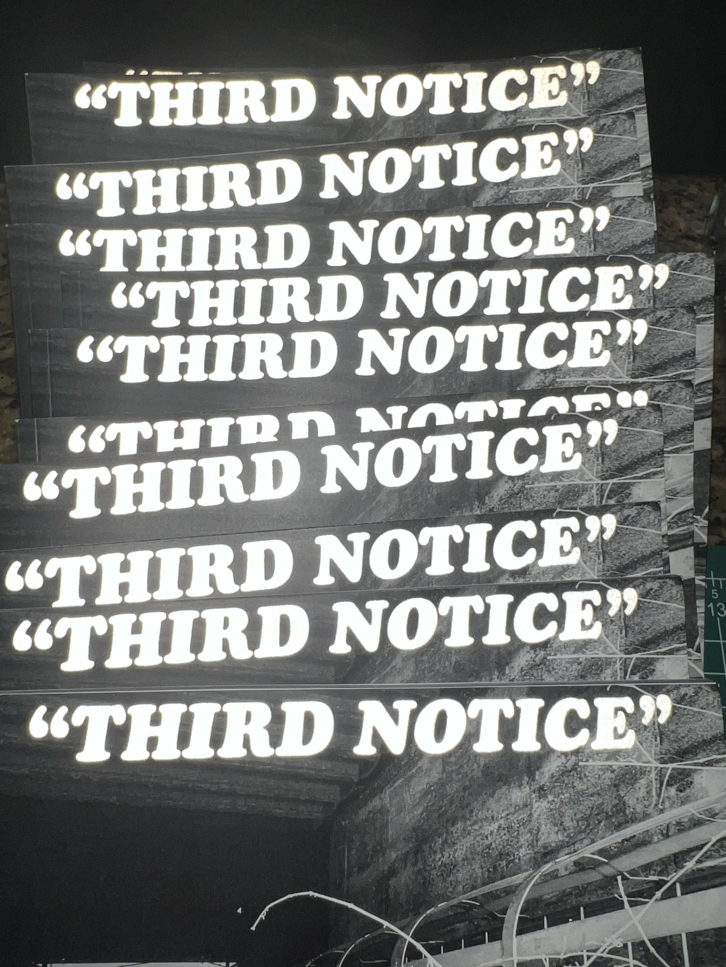 "THIRD NOTICE" is a black and white photo zine consisting of images taken in New Orleans, Baton Rouge, Philadelphia, Chicago, Nashville, and Orange Beach. Paired images are meant to evoke some sort of feeling through poetic moments. The project's theme is loosely based on "threes."
